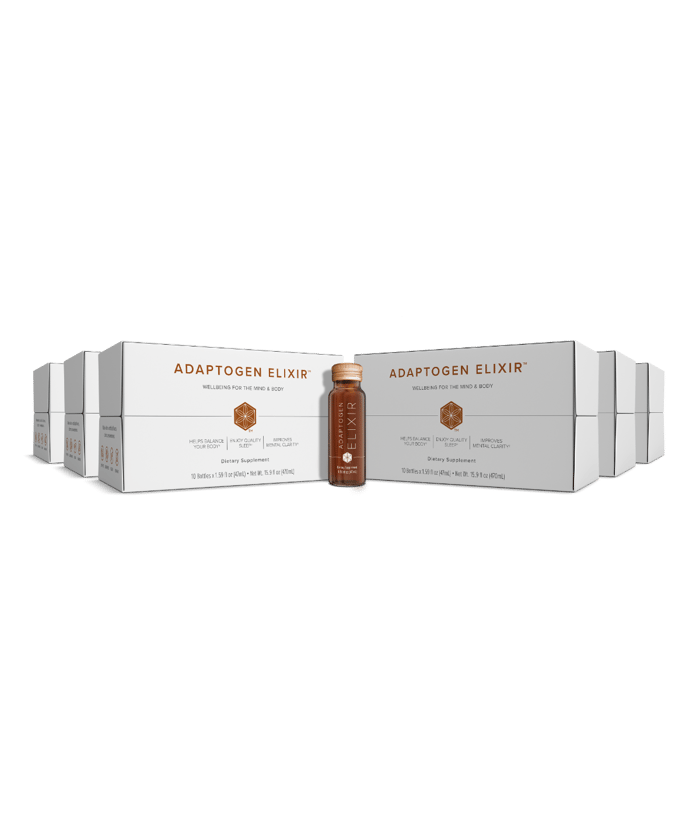 Why let your serenity run dry? Stress less and stock up with 4- or 6-count boxes of Adaptogen Elixir and bring balance to your every day. It’s just what Mother Nature ordered.