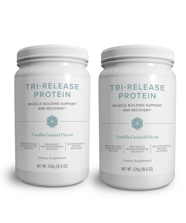 What kind of protein does Tri-Release Protein contain?Tri-Release Protein contains a blend of three types of protein: whey protein isolate, which is rapidly digested; egg white protein, which has an intermediate rate of digestion; and milk protein concentrate (a source of casein), which is digested slowly. Protein variety is key for immediate and sustained amino acid release.How does protein play a role in supporting my training and recovery? How does protein help me get the best results?Several analyses suggest that a higher protein intake has a significant impact on strength and performance. Even endurance athletes can benefit from a higher level of protein intake. Adding protein to a carbohydrate-rich beverage during exhaustive endurance exercise helps suppress markers of muscle damage and decreases muscle soreness after a workout. In addition, combining protein and carbohydrate consumption during prolonged endurance exercise promotes a higher whole-body net protein balance.What is muscle protein synthesis? How does it work, and why is it important?Muscle protein synthesis (MPS) is a normal part of metabolism where the body builds or rebuilds proteins. Muscle growth occurs when the rates of MPS exceed that of muscle breakdown. This is important because if the rate of muscle breakdown is faster than MPS, loss of lean mass can occur. This can hurt performance outcomes and worsen overall health.What is Velositol? What are the effects when combined with protein, and how does it promote greater MPS compared to protein alone?Velositol is a patented amylopectin chromium complex designed to improve the efficiency of BCAAs to maximize MPS when combined with protein. A clinical study showed enhanced MPS in participants who used Velositol after exercise compared to protein alone.How does chromium contribute to the overall benefits of Tri-Release Protein?Chromium supports fat, protein, and carbohydrate metabolism in the body. The percentage daily value of chromium is the minimum amount of chromium needed to prevent deficiency in most healthy people. Tri-Release Protein supplies chromium in its Velositol amylopectin chromium complex in an amount shown to promote greater MPS than protein alone.I exercise but I don’t know if I exercise enough to warrant more protein. Are my workouts intense enough for a protein boost to be effective?Protein is an essential part of any nutrition plan designed to support overall health and wellness. With increased amounts of activity, your protein needs also increase. Therefore, any active individual can benefit from additional protein throughout the day. Whether your exercise of choice is a brisk walk, a long run, or a strenuous strength training routine in the gym, it is essential to supplement with protein to support the repair and growth of lean muscle mass.If I don’t work out, will I still benefit from this product?Tri-Release Protein is a good option for those looking to lose weight or add more protein to their diets and people who work out regularly. Increased levels of protein can support weight loss goals by maintaining lean muscle mass and increasing satiety. This product can assist in the building of lean muscle when combined with regular resistance training and a healthy, balanced diet.Is Tri-Release Protein a meal replacement?No, Tri-Release Protein is a premium protein supplement. It does not contain carbohydrates, fats, or other nutrients at a level suitable for the nutrition profile of a full meal.How is Tri-Release Protein different from IsaLean® Performance Protein?While both are packed with high-quality protein, Tri-Release Protein is a multistage protein supplement made with whey protein isolate, egg white protein, and milk protein concentrate, formulated to support muscle growth and performance goals. By contrast, IsaLean Performance Protein is a complete meal replacement shake made from high-quality whey protein.Who can consume Tri-Release Protein?Tri-Release Protein is recommended for adults 18 and older. It is not recommended for those who are pregnant or breastfeeding.How many servings can I consume per day?You can consume up to four servings of Tri-Release Protein each day